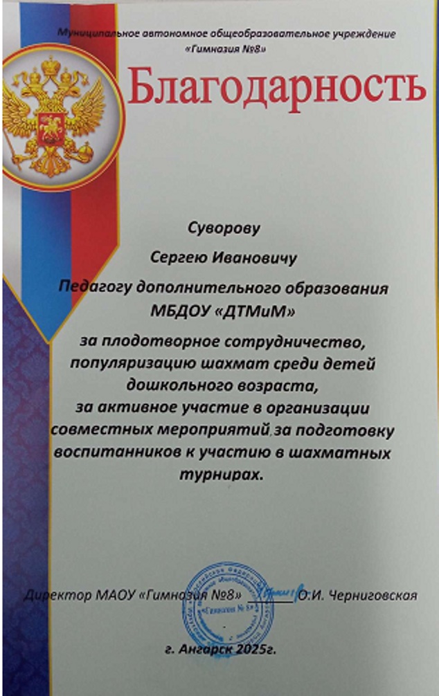 - С августа 2020 г. – тренер по шахматам Дворца творчества (г. Ангарск).